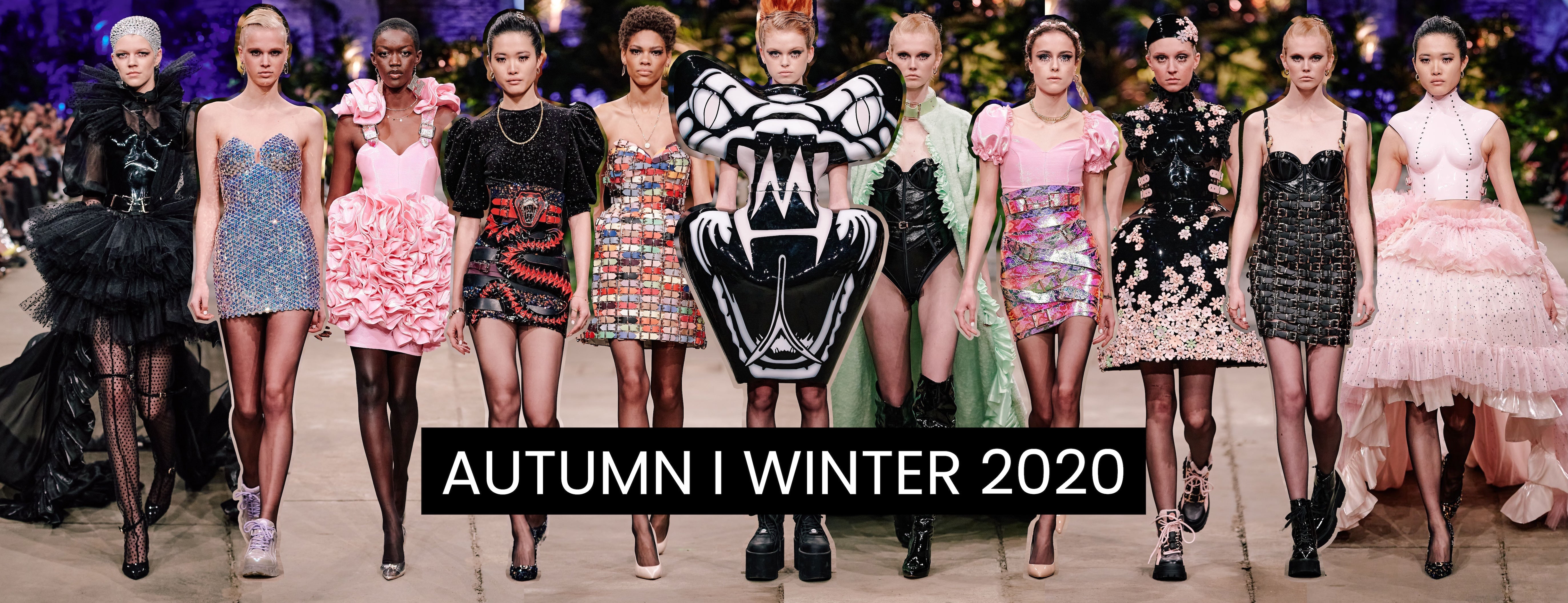 Marina Hoermanseder’s AW 20 / 21 collection is all about diversity. Here, the designer invites us to explore a wide range of different epochs. Like the interplay of light and shade, her collection juxtaposes light and dark materials as well as mat and shimmery textures to bring out their natural contrast and harmony. Where tough leather meets soft fabrics and opulent shapes meet slim silhouettes, the results highlight the electrifying heterogeneity of creative craftsmanship. A dusky enchanted forest, governed by a queen in a sweeping, detailed baroque gown, is illuminated by the moon and the radiance of a dazzling creature from a faraway world clad in a glittering Swarovski dress. Their interplay of handcrafted leather flowers and flowing, undulating fabrics feels both mystical and strangely familiar. Puffy tulle with polka dots and tiny pink hearts accentuates a collection that exudes a soothing sense of gentleness. Hoermanseder’s love of 80s and 90s fashion, already apparent in previous collections, is unleashed in clear stylistic references to both of these decades. For the first time, the label presents a trouser suit in Marina Hoermanseder’s signature style. It evokes elegance and feminine power, just like her sleek leather biker jacket. The latter comes with unconventional puffed sleeve styling, offset by tight leather trousers that draw the eye with clever cut-outs. Imitation snakeskin, iridescent materials and plush-inspired lingerie offer a deft nod to the 90s, the designer’s formative coming-of-age decade.